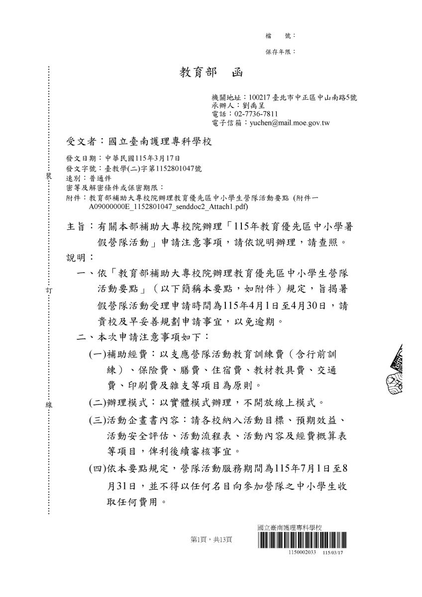 一、依據教育部115年3月17日臺教學(二)字第1152801047號辦理。